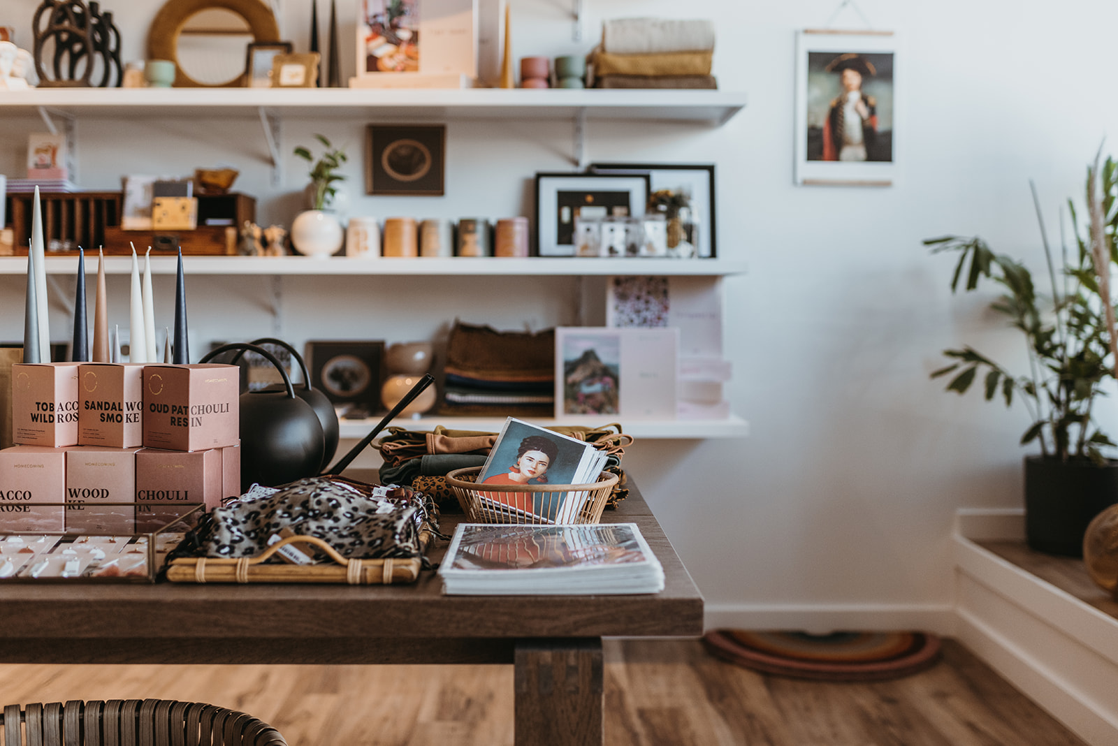 Just like a great plate of food, retail displays need depth. When we moved, we chose deeper wall shelves and larger tables that would allow us to layer items into the displays, play with height, and hang art to create visual interest. Sometimes all a good display needs to make it great is a few more inches.